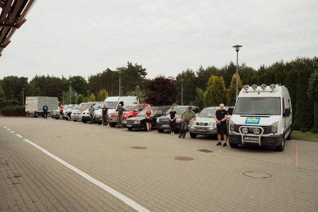 Under resorna är de alltid flera bilar som kör tillsammans till Ukraina. När de kommer fram skänker de både bilarna och packningen till sina kontaktpersoner som tar dem vidare till fronten.