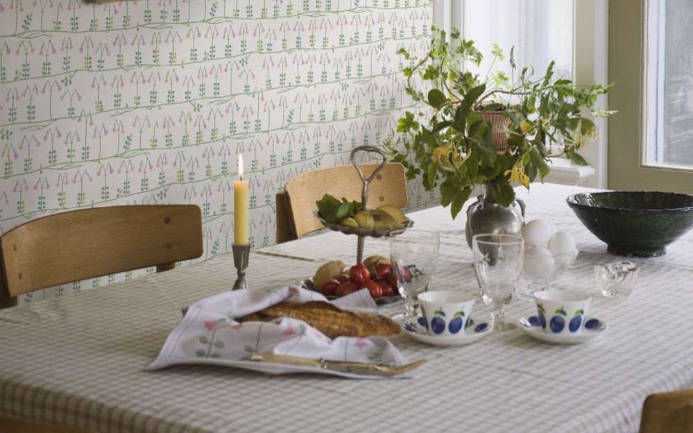 Stig Lindbergs Pall är retroklassikern som gått från porslin till vägg. Lekfulla äpplen i rosa eller grönt visas på vit botten, fyllda med samma tidlösa charm som när de skapades på 60-talet.