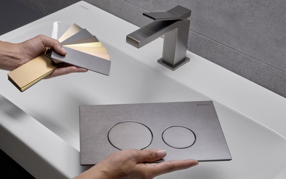 De nya färgerna i Geberit Sigma40 är utvecklade för att matcha materialen och nyanserna i några av dagens mest efterfrågade blandare från olika varumärken. Spolplattan är dessutom ultratunn, endast 4 mm, och finns i flera standardiserade metallfärger utöver den specialanpassad versionen som matchar ledande blandare.